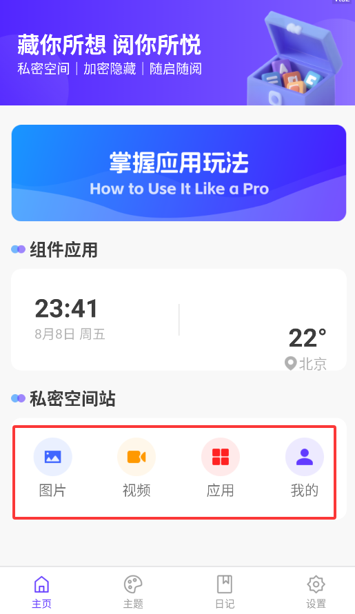 软件隐藏箱这个app是个藏东西的软件,能把手机里不想让人看见的东西都锁起来。你可以设个密码,然后把照片、视频、日记这些私密文件都放进去,别人就看不到了。它还能把手机上的应用图标换成别的样子,这样别人连你装了啥软件都不知道。想保护隐私的话,用这个软件挺方便的,该藏的东西都能藏好。