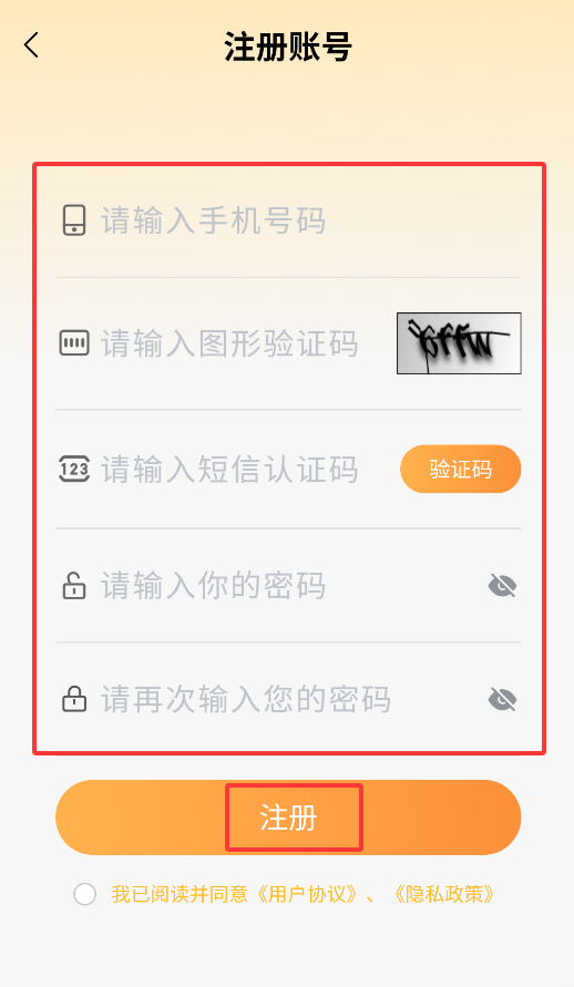 3、注册需要填写手机号码、设置登录密码(需二次确认),并通过短信验证码完成身份核验。