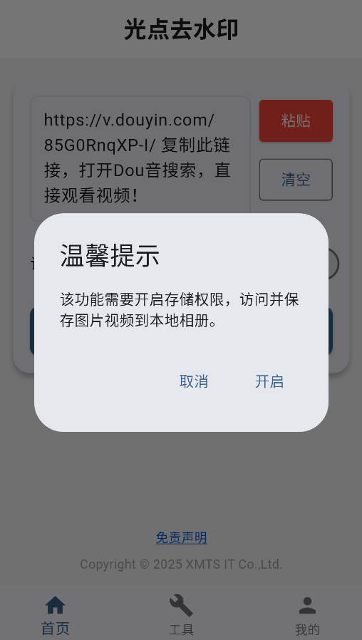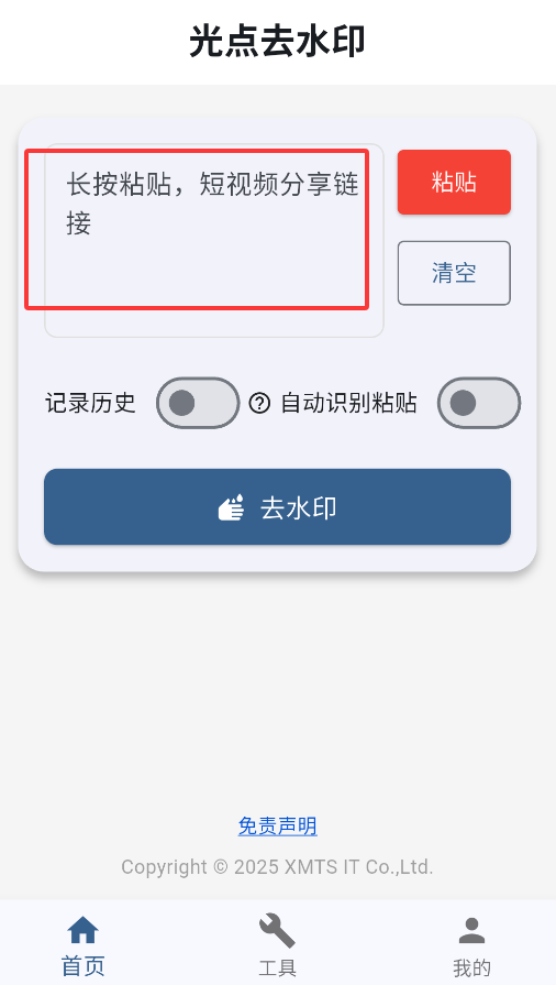 1、启动应用后,在首页粘贴框内长按粘贴要处理的短视频链接(支持抖音、快手等主流平台)。