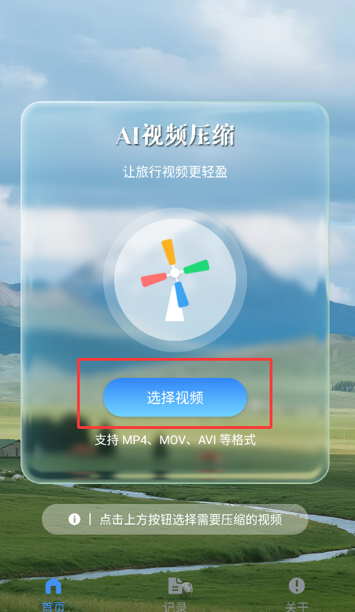 2、在软件首页点击"选择视频"按钮,系统将自动跳转至视频选取页面。