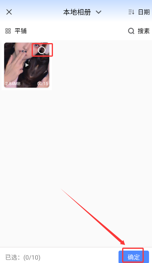 3、从手机相册中勾选需要处理的视频素材,确认无误后点击右下角的确认键继续。