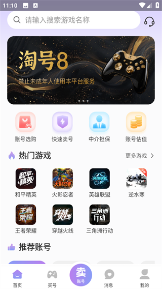 1、点击软件进入来到首页,可以直接选择热门游戏进入查看对应的游戏账号资源。