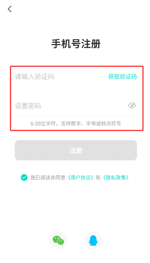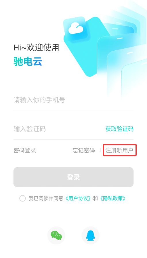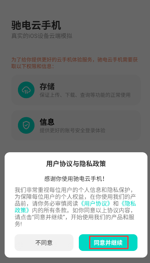 1、首次启动APP会弹出用户协议,点击"同意"后进入登录页面。