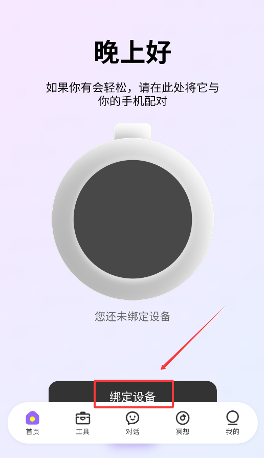 1、打开APP后,在首页找到"设备连接"选项,按照指引完成与手机的配对绑定操作。