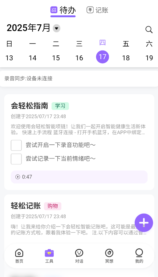 2、进入"生活工具"页面,可以创建每日待办事项清单,还能使用智能记账功能管理日常开支。