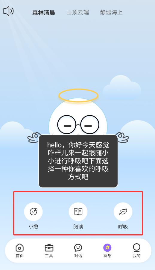 4、"放松空间"提供多种冥想音频资源,包括短时休息、阅读背景音和呼吸训练等减压内容。