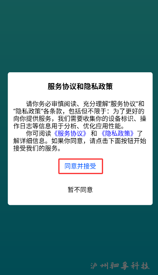 1、首次启动老人小孩安全守护APP时,系统会弹出用户协议确认窗口,点击"同意"按钮后方可进入应用主界面。