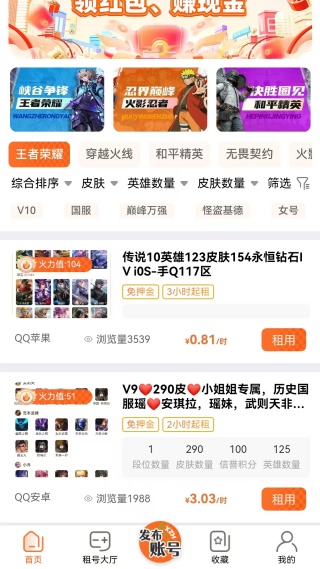1、租赁价格实惠,且租用时间越长优惠越多,设有特价专区,部分v10账号低价玩,甚至有1元租号活动。