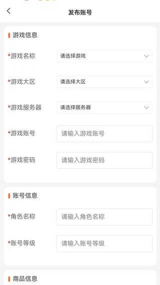 3、用户如果需要将账号租出去,可以在发布账号模块填写游戏信息。