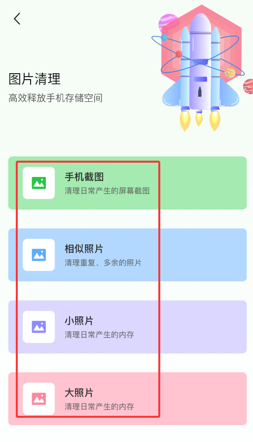 3、图片清理支持智能分类扫描(如截图/相似图/大文件),可批量删除释放存储空间。