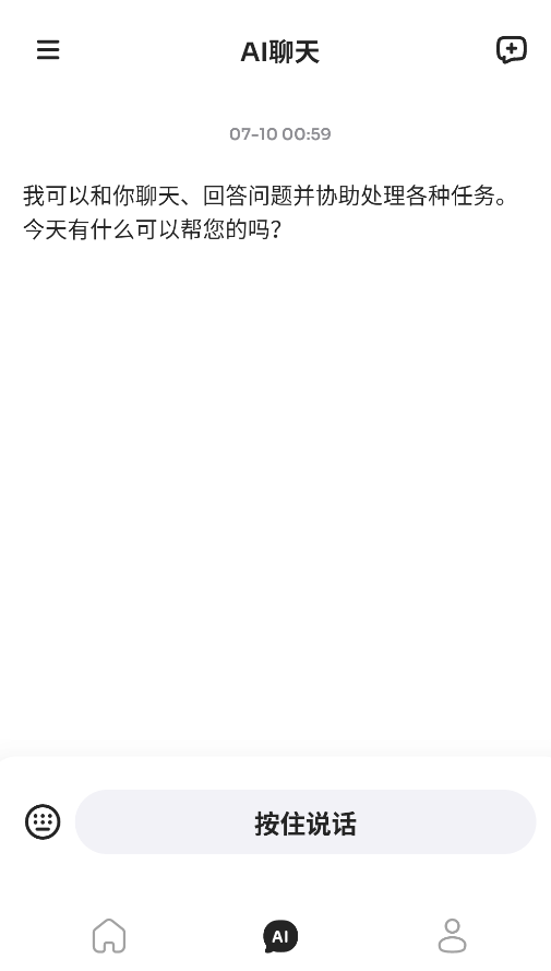 2、进入AI对话窗口,支持文字/语音双输入模式,可解答各类问题并提供生活助手服务。