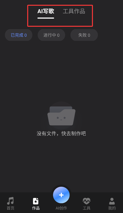 3、"我的作品"页面会保存所有AI创作的音乐作品和工具处理后的音频文件。