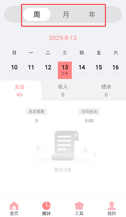 3、数据统计页面支持按周、月、年查看收支明细和结余情况,帮助用户掌握财务状况。