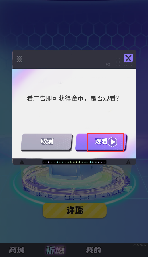 3、兑换需要消耗金币,可通过"祈愿"功能观看广告视频获取金币奖励。