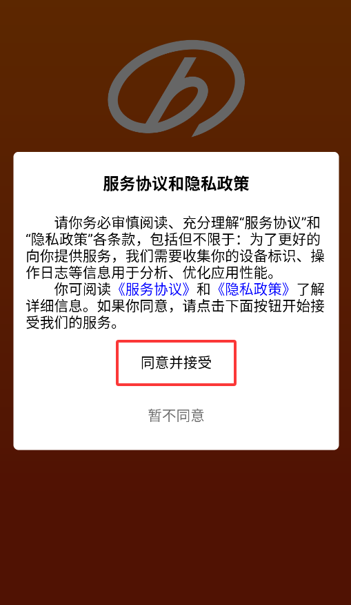 1、首次启动远大智能建筑APP时,系统会弹出用户协议窗口,点击"同意"按钮后进入登录页面。
