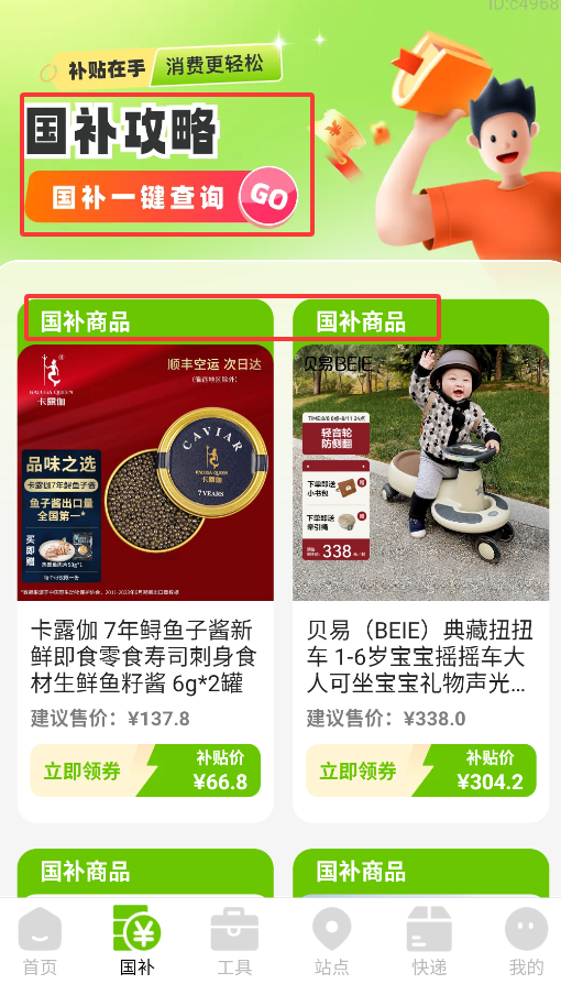 1、政策查询指引:在"国补查询"输入商品名称或扫描条形码。查看"适用政策"标签获取针对性补贴信息。