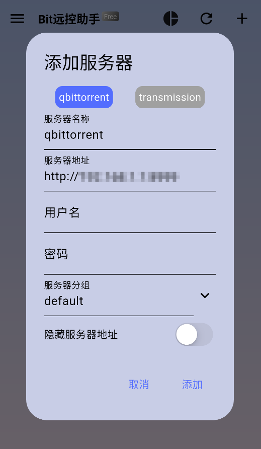 1、打开APP后,点击右上角的"+"按钮,进入服务器配置页面开始添加远程服务器。