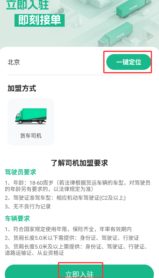 3、定位当前城市后,系统自动显示当地加盟政策,确认符合要求即可提交入驻申请。