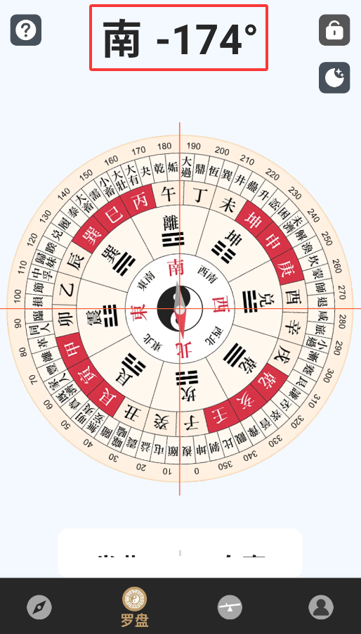 1、基础定位操作:保持手机水平放置,等待罗盘指针稳定。蓝色指针指示磁北方向,红色为真北方向。