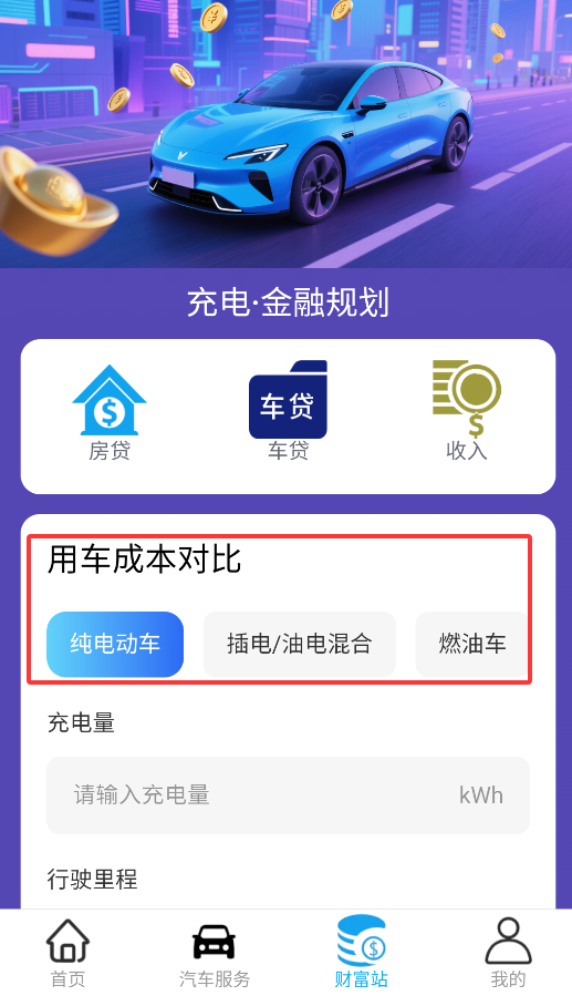 4、用车成本分析功能提供纯电动、插电混动及燃油车的能耗费用对比图表(数据每周更新)。