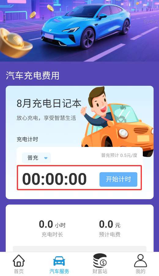 3、充电服务页面清晰展示计费标准,支持一键开启充电并实时计算本次充电费用。