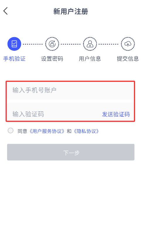 2、在登录页面底部找到"新用户注册"选项,点击后跳转至账号注册界面。