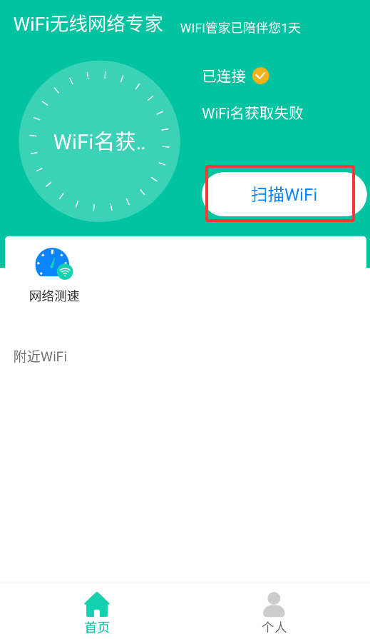 2、首页提供"扫描WiFi"功能,点击后即可自动搜索并显示周边可用无线网络。