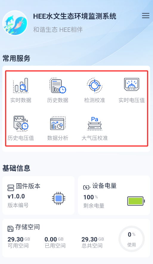 4、连接成功后可使用实时数据采集、历史记录查询、设备校准、电压监测及智能数据分析等核心功能。