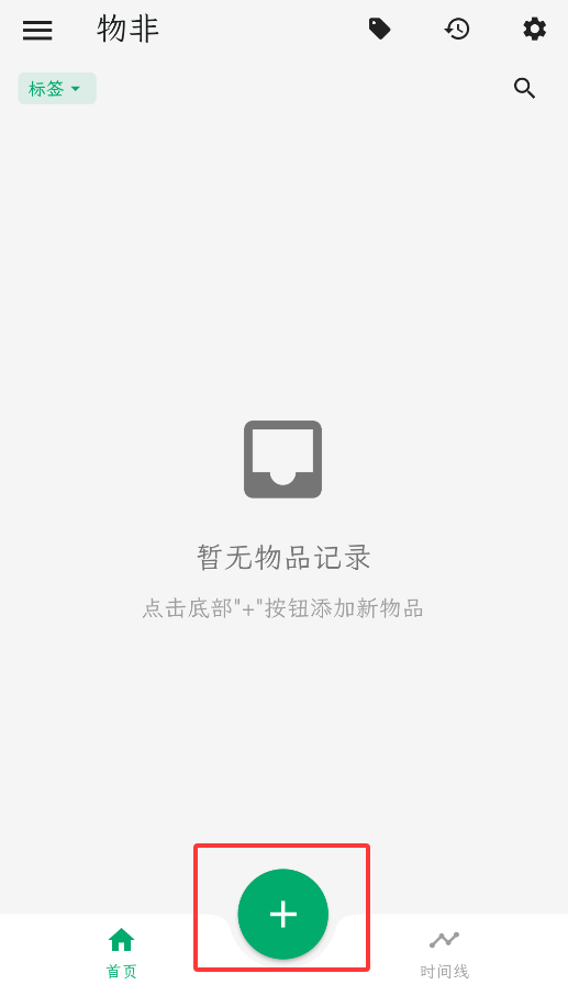 2、通过底部"+"号按钮可新建物品记录,跳转至信息录入页面。