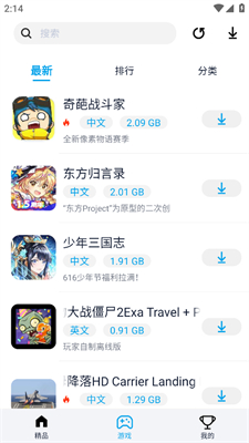 3、进入游戏模块查看最新游戏推荐和多样游戏排行、分类等。