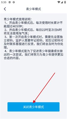 3、点击【关闭青少年模式】。