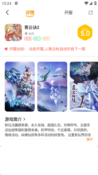 2、在游戏详情页,除了能查看游戏简介,还能掌握开服动态,了解游戏最新情况。