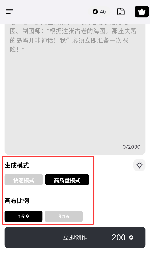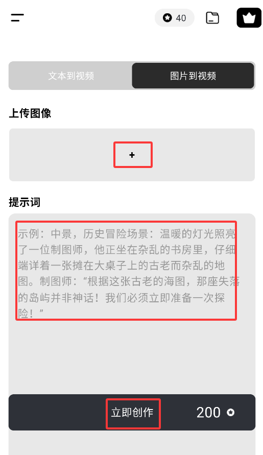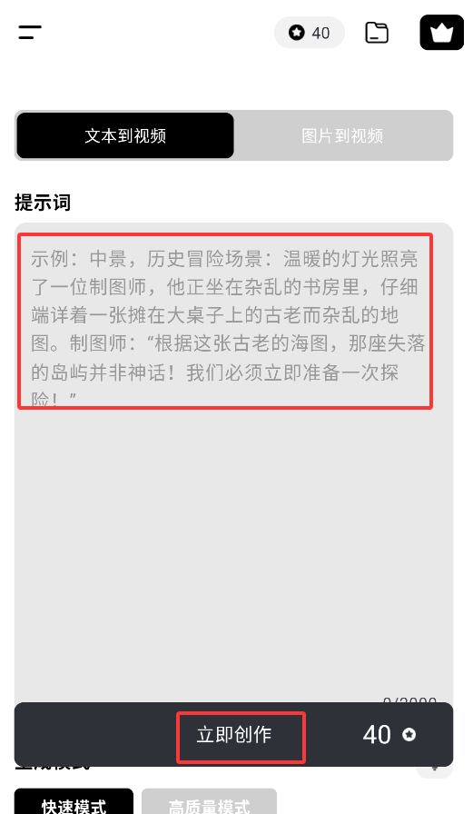 1、用户打开应用后进入创作页,可选择文生视频或图生视频模式,输入文案或上传图片素材开始创作流程。