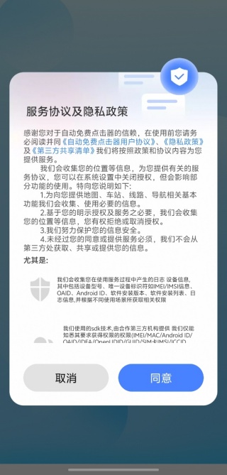 1、安装这款软件,然后系统会出现服务条款与隐私保护协议,大家点击同意就行;