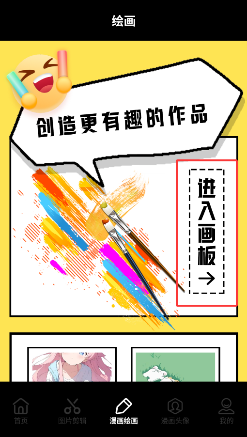 4、"绘画创作"模块内置数字画板,可自由选择笔刷/颜色进行原创绘制,作品支持保存或分享。