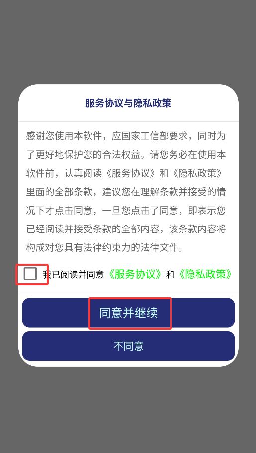 1、首次启动老人简洁桌面APP时,会弹出用户协议窗口,点击"同意"即可进入主界面。