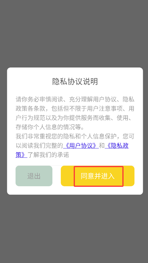 1、首次启动Fanfic APP时,系统会弹出用户协议窗口,点击"同意"按钮后即可进入主界面。