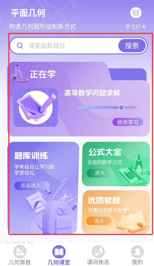 3、"课程中心"提供高等数学题库训练、公式查询及名师讲解视频等学习资源。
