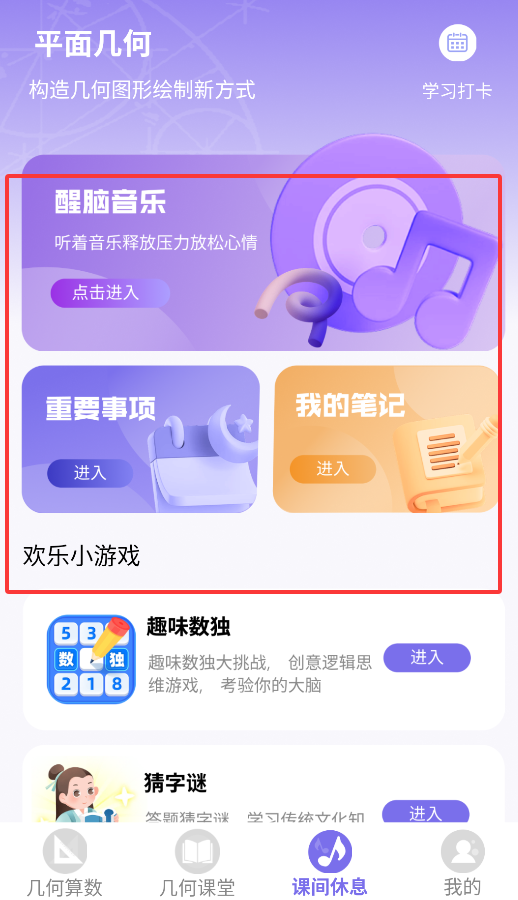 4、"学习工具"集成提神音乐、笔记记录及学习任务提醒等辅助功能。