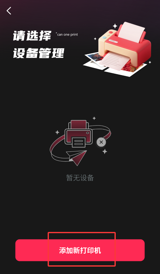 3、点击右上角"+"按钮进入设备管理页面,选择"添加新打印机"开始配置流程。
