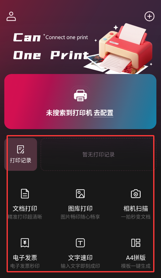 Can one print这个打印APP挺好用的,连打印机特别快,手机里的文档、照片都能直接打。平时开发票、扫文件这些办公需求也能搞定。最方便的是能管理打印过的文件,下次再打不用重新找。经常需要打印的装一个挺省事,办公家用都合适。要用的可以下载试试。
