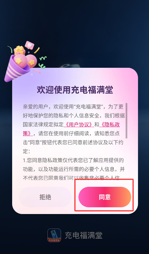 1、首次启动APP会显示用户协议和隐私政策,点击"同意"按钮后即可进入主界面。