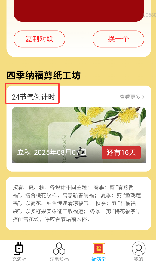 4、"节气提醒"板块结合24节气提供特色服务,如充电优惠或保养建议,增强用户体验。