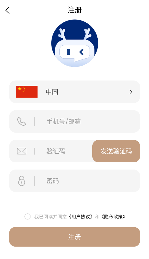 2、在注册界面填写有效的手机号码或电子邮箱,获取并输入验证码,设置6-20位包含字母数字的密码完成注册。