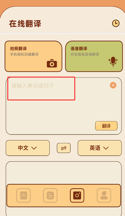 4、通过多功能翻译界面,支持文本输入、实时语音转换和拍照识别三种翻译方式,满足不同场景需求。