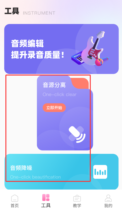 3、音频工具箱提供专业级音源分离(人声/伴奏分离)和智能降噪(环境杂音消除)功能。