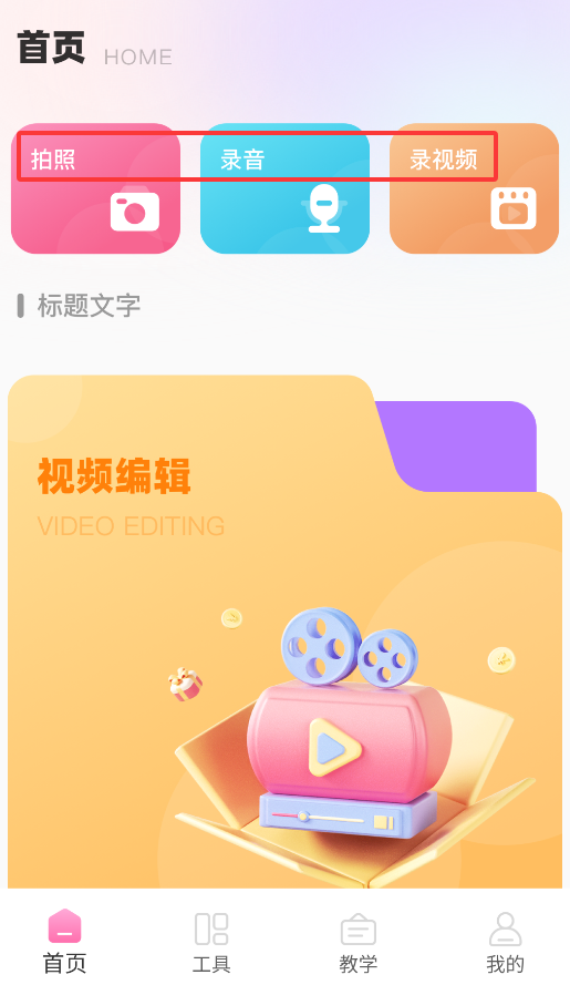 2、首页支持多种输入方式:直接拍摄视频、录制声音或导入本地音视频文件。