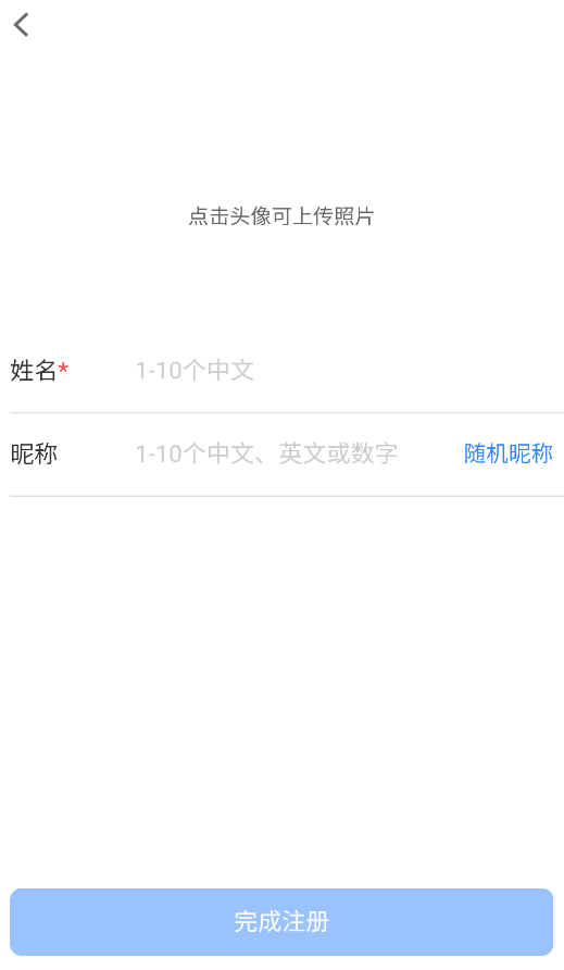 3、完善个人资料时需上传清晰头像,设置中文昵称与真实姓名以便业务对接。