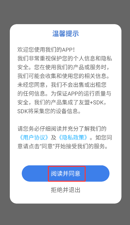 1、首次启动爱车之家APP时,系统会弹出用户协议窗口,点击"同意"按钮后即可进入主界面。