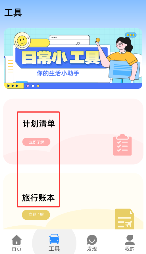 3、工具中心支持"计划清单"管理自驾行程,并提供"旅行账本"记录出行花费,方便用户规划用车生活。